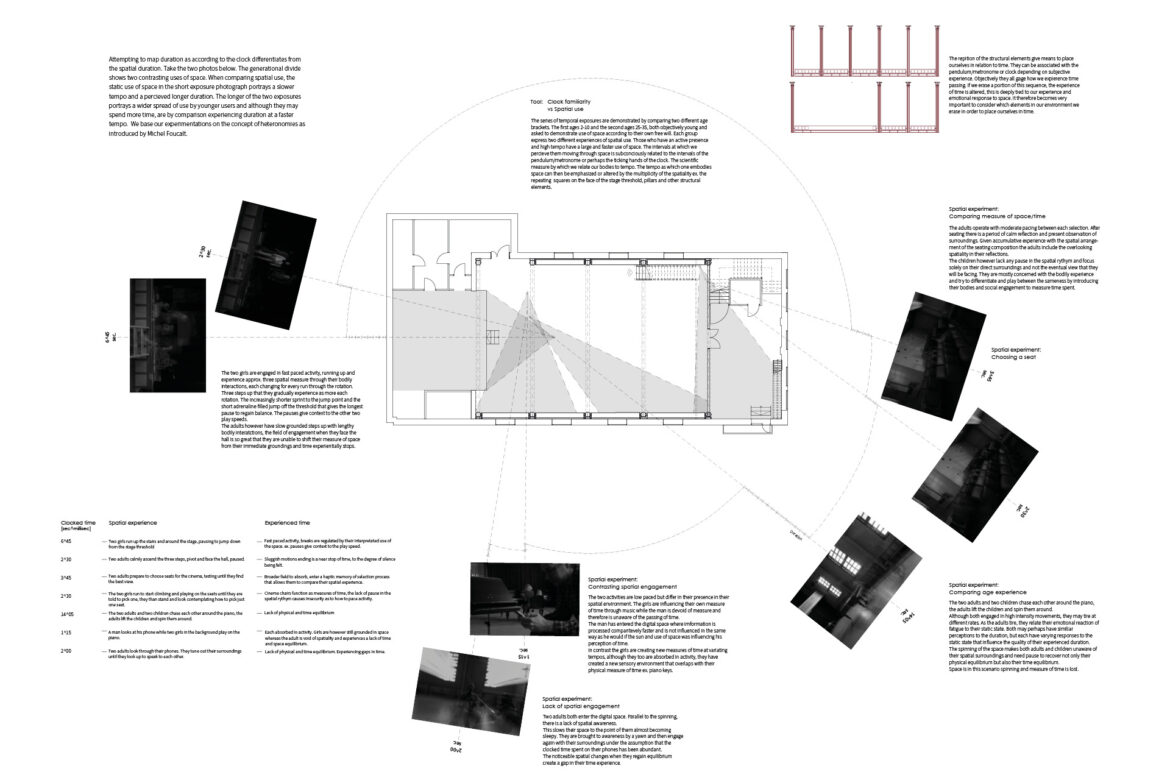 Subjective experiences accumulate to form a perception of a true understanding. Embracing the intensity of those subjective experiences, allows us to understand the relation back to experiences of place, the foundation of our identity. Identifying time in its true appearance means to consciously experience. We use duration of time in space to better grasp the identity of our chosen place of investigation, in Dalehallen.