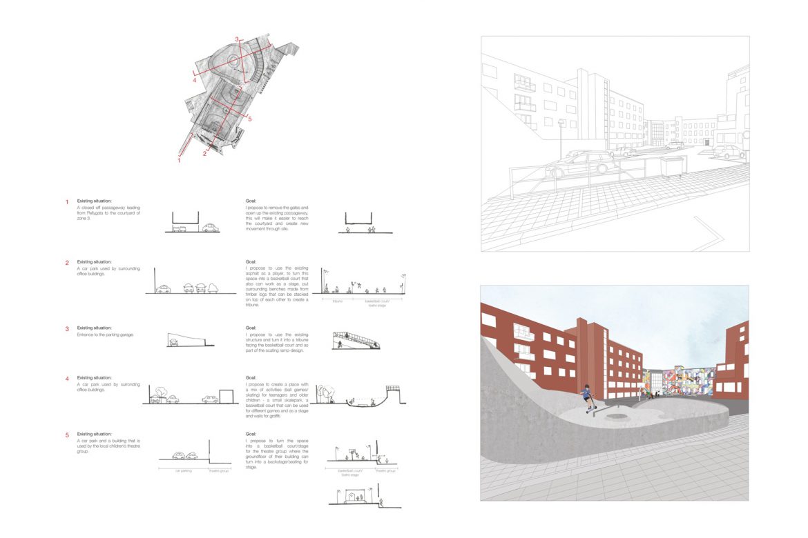 - The zones of the site are places that today are mainly used and designed for the car, and they have a great potential of becoming places that will bring better quality of life to the city, both for urban and local users.