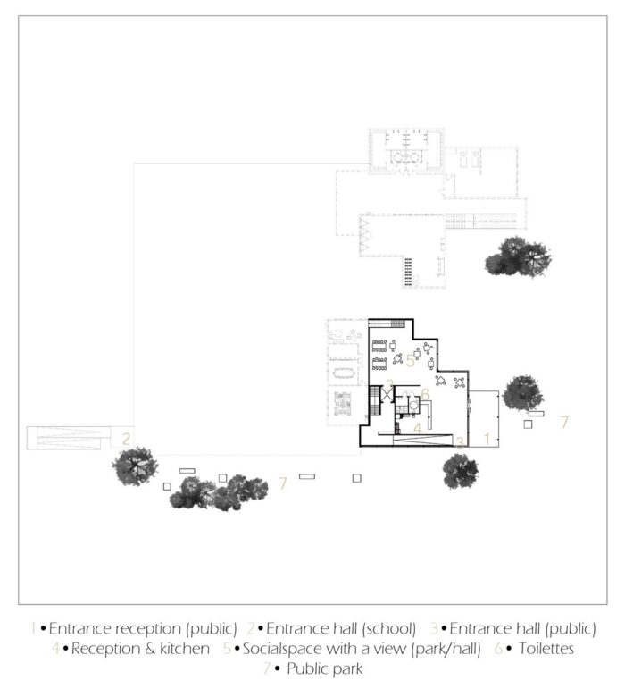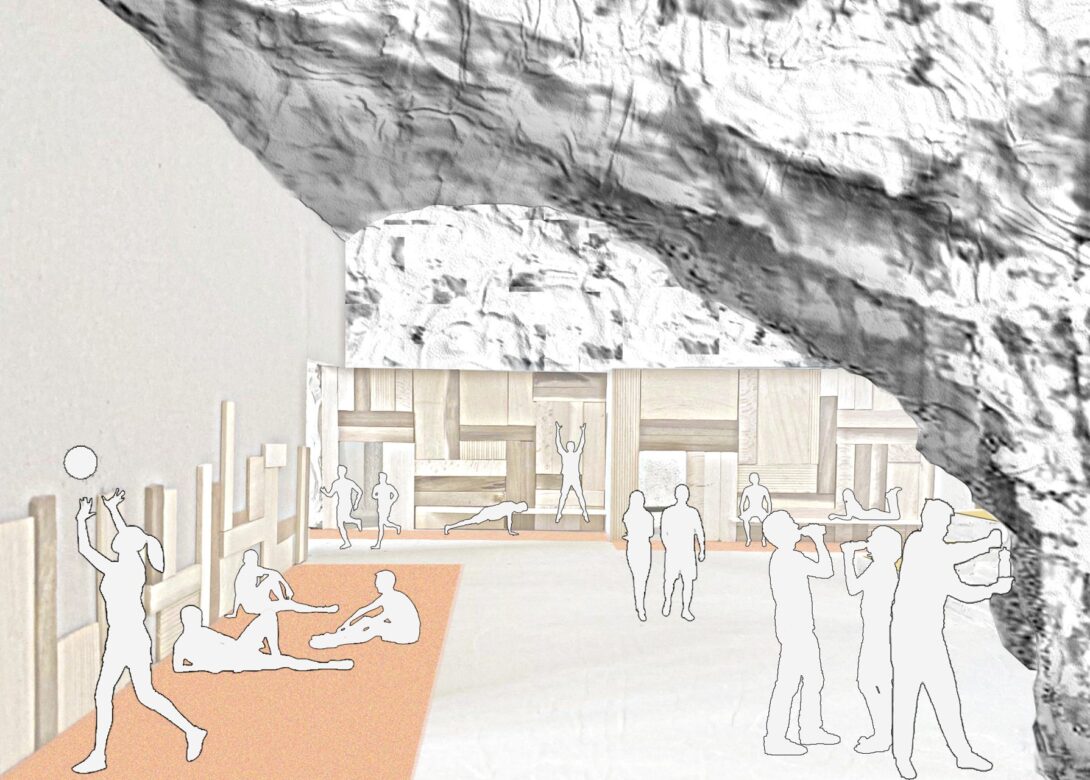 I would like to reconsider the role of support spaces quality to give balance to the body of the building by treating them as important as the main space. I reconsider each space within the arena bringing athletes and other users to the center stage instead of just focusing on the audience. This aims to improve the everyday life of athletes within the sport-arena and architecture has a crucial part in this. By introducing poly value architectural elements that actively engage with the users, by starting from the inside-out, and challenging today`s standardizations of spaces within the sport-arena. In order to achieve balance also in its context, I view the out-side in, involving the physical context and the public, with equal importance.