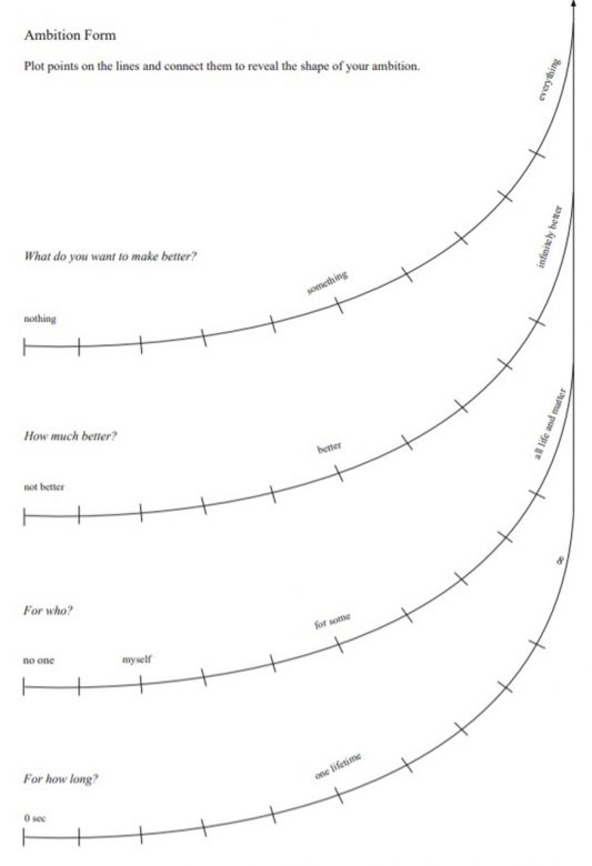 To act with matter in the present, in its complex relationships, in its environment, do we need a radical approach to planning? Is there a way of preserving multiplicity and allowing nonlinear incidents and relations? Planning the future through the study of past events can offer change, but not radical change. Even though repeating an action in a shifting world is different every time, we argue that the ambition for a truly radical future needs to be higher.