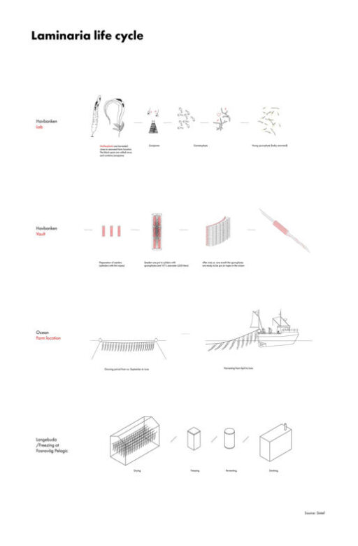 -The process of farming seaweed: How the architecture can be driven by the program and how the buildings can be rigged for different seasons.