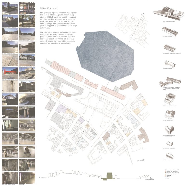 We choose to work with a square and the parking space underneath connected to Bergens main music venue, Grieghallen as a result of our investigations. To find out more, download our program.