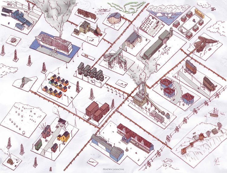The sustainable future of the Svalbard housing aims at both building processes and improving part of existing city planning. The new planning proposal will introduce a new building typology to the town. Where existing houses under landslide threat are relocated to safe sites and reassembled in a new collective arrangement, which responds more specifically to climate, site and views as well as creating social space for different seasons. This typology will encourage residents to shift their habits to become more sustainable as a collective act. Moreover, the project seeks a specific architectural expression for Svalbard, which responds to a new social and environmental consciousness; existing housing units are relocated, reused and reshaped into mixed multi-units while gaining additional area and greater stability, thermal comfort and options for mediating spaces to the outdoors. Adjustment of the protective roof and exterior wall elements shelter the inhabitants and open up new spaces of interaction with each other and with their environment.